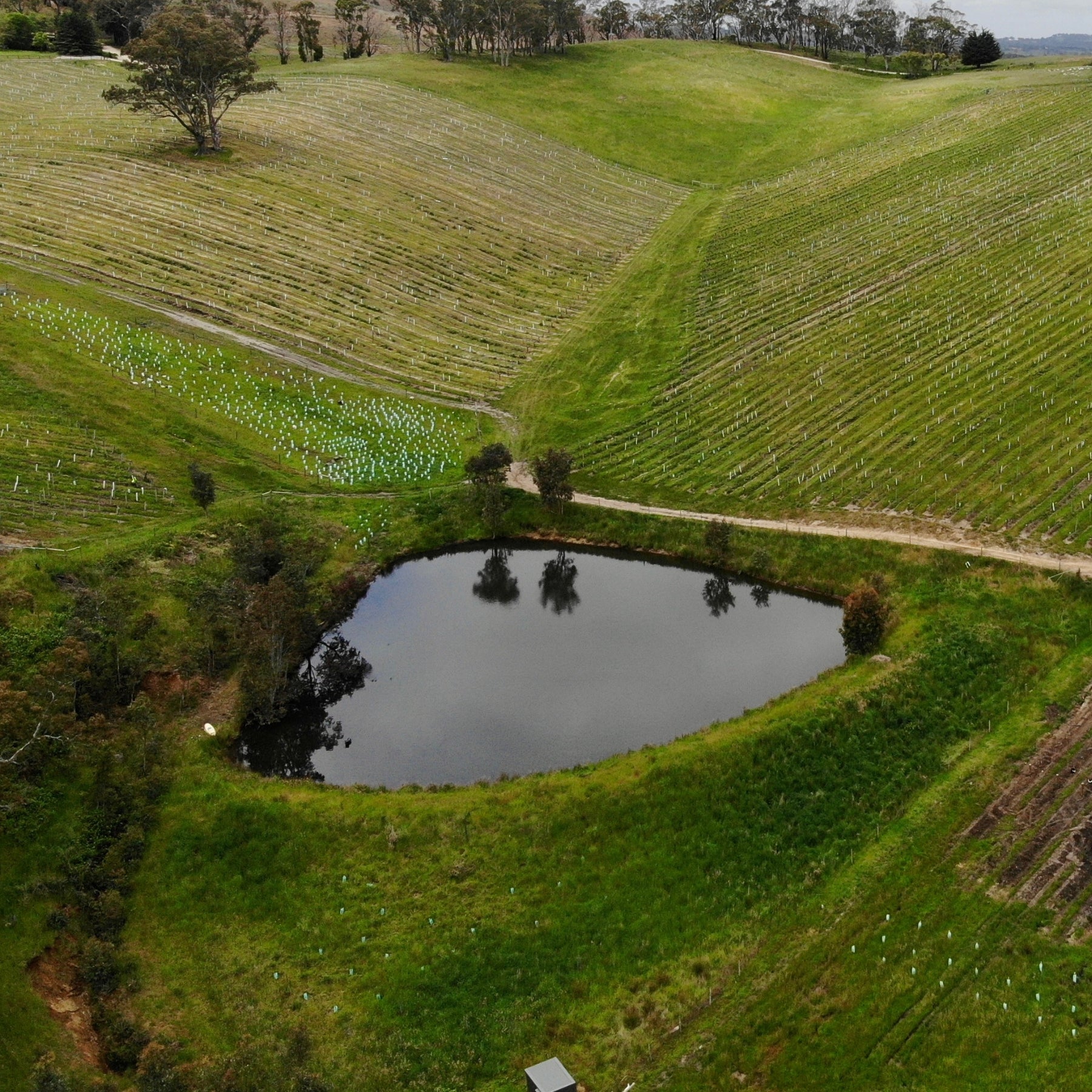 158,000L of rainwater storage allows us to harvest and hold rainwater for use around the property.